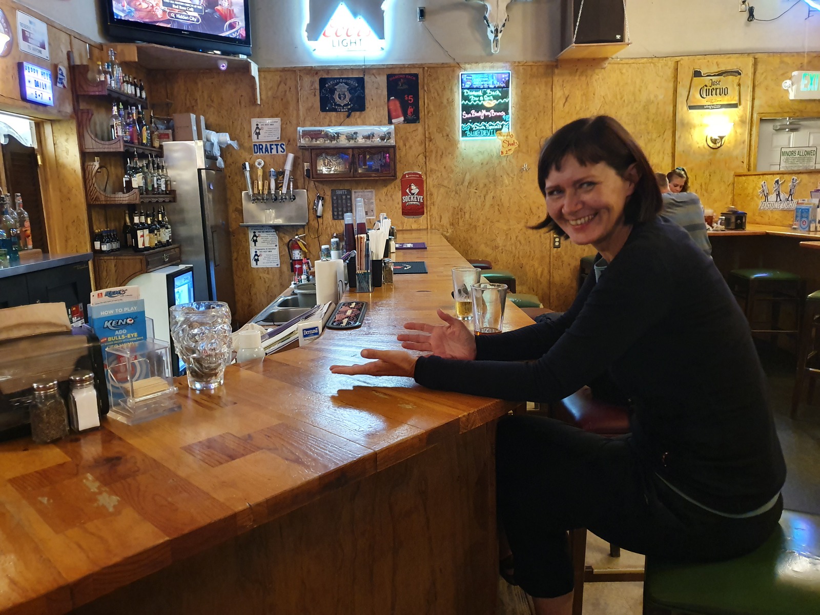Nach dem anstrengenden Fahrtag beschließen wir Essen zu gehen, obwohl wir eine Küche zum Kochen hätten. Das „Diamond Black“ sticht uns ins Auge und sieht nach einem verwegenen Lokal aus. Am Parkplatz stehen große Pickup Trucks und wir erwarten Farmer im karierten Flanellhemd an der Bar.