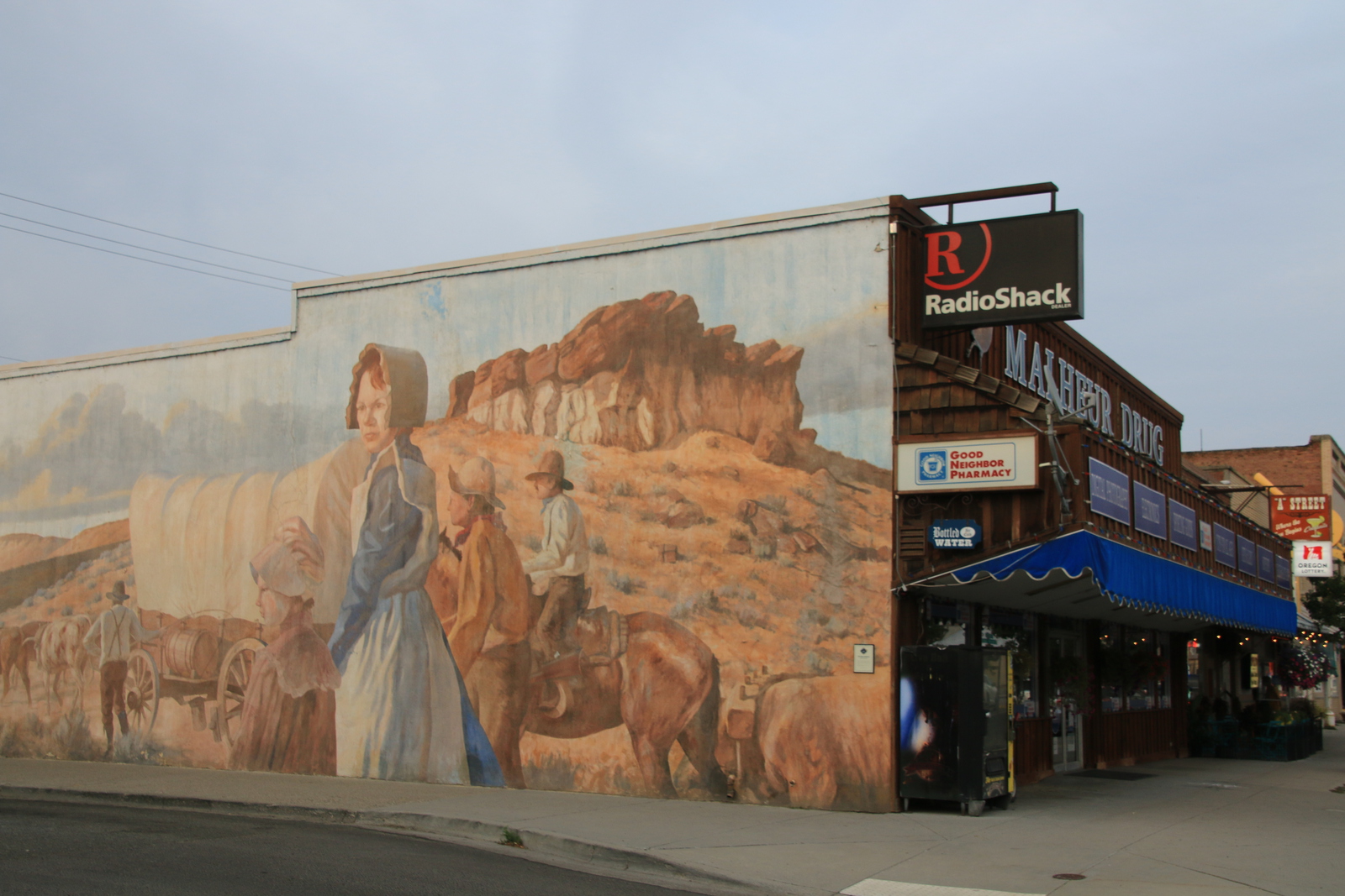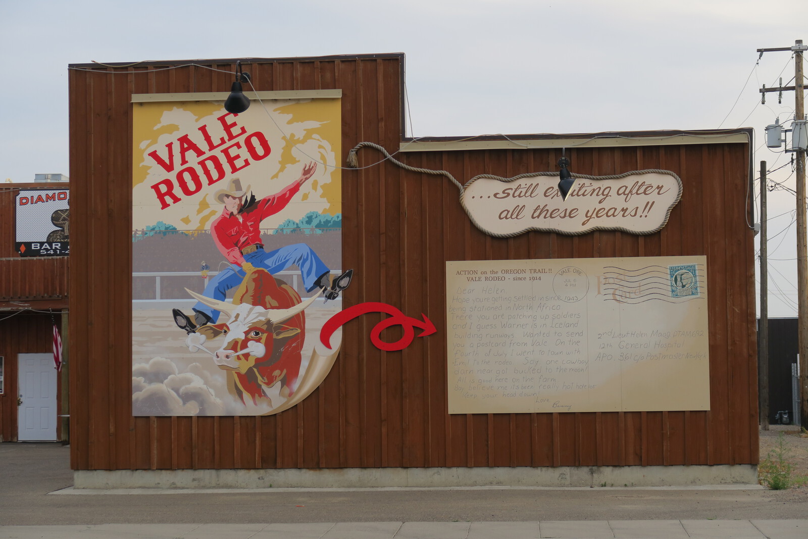 Wir sind froh, als wir in Vale ankommen und unser Quartier beziehen. In Vale wird uns erst bewusst, dass wir entlang des Oregon Trails fahren. Überall sind Schautafeln und riesige Wandgemälde über die Siedlertrecks aus dem 19. Jahrhundert. Andrea fühlt sich gleich an Wildwestfilme erinnert.
