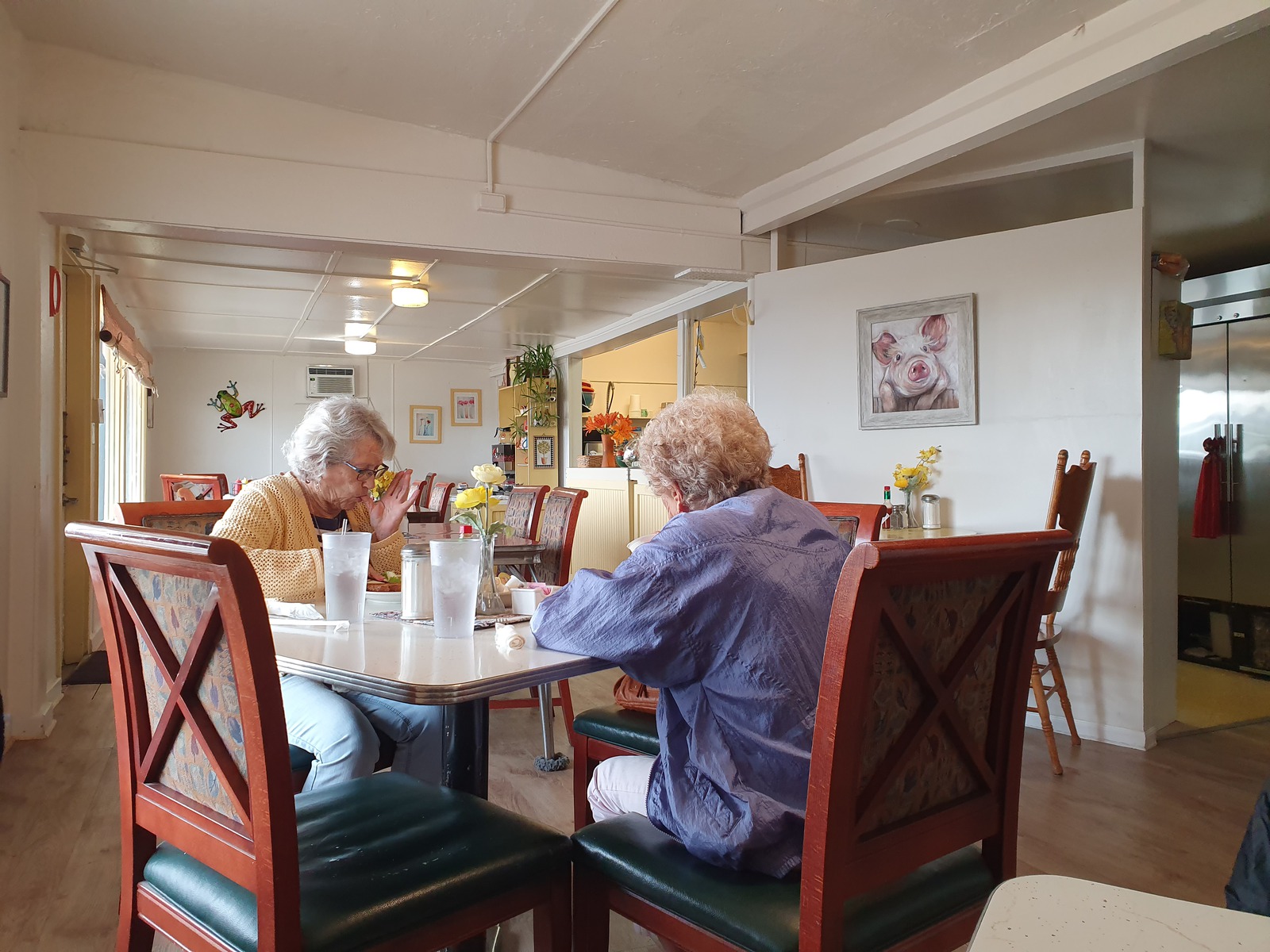 Wir gehen rein und sehen uns um. Alles ruhig und gemächlich. Es findet nämlich gerade eine High School Class Reunion von ca 70-jährigen statt.