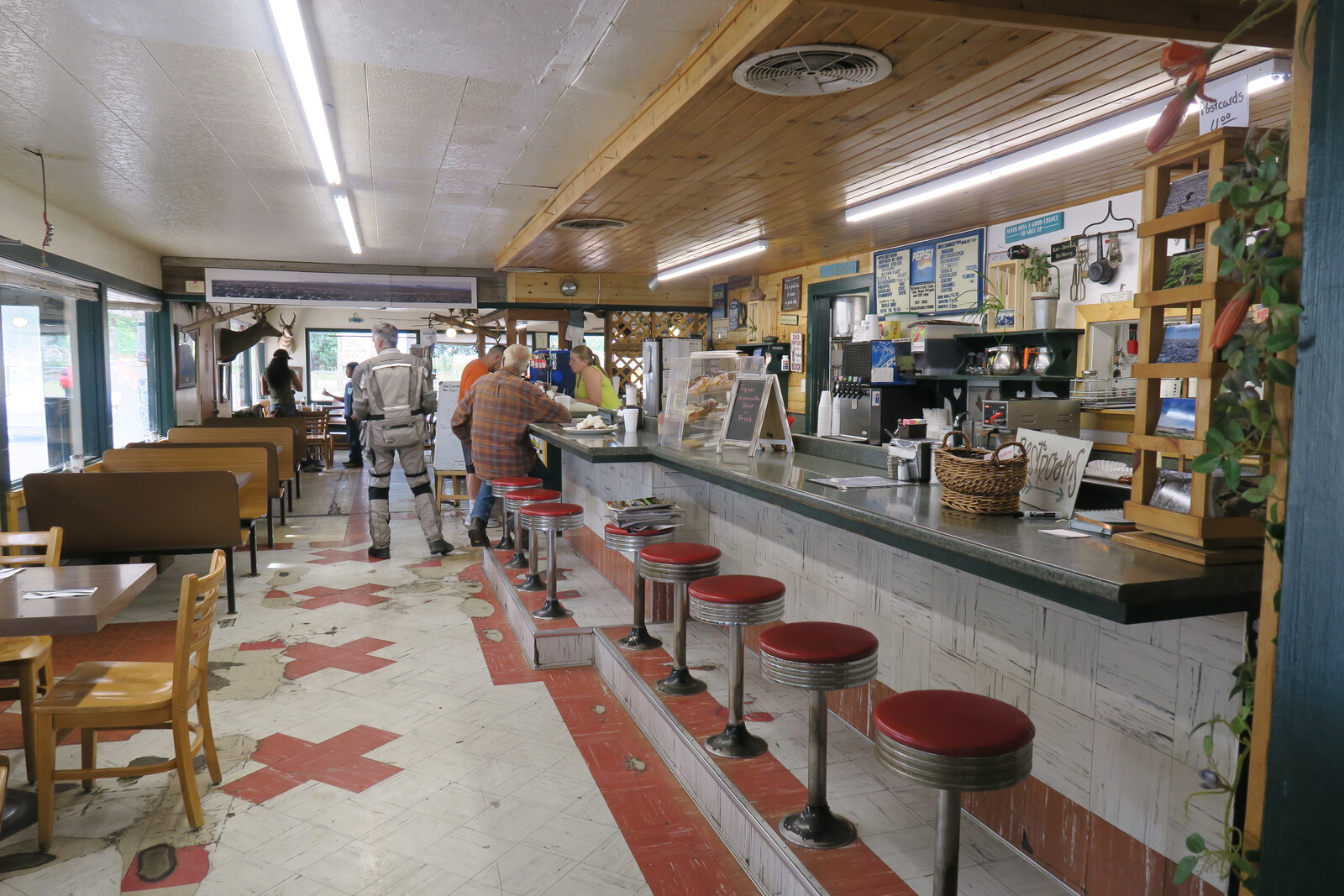 Natürlich sind die Straßen alle schnurgerade. Wir muten unseren Reifen schon wieder einiges zu. Nach Burns finden wir sogar ein kleines Cafe an der Straße, wo wir kurz was trinken.