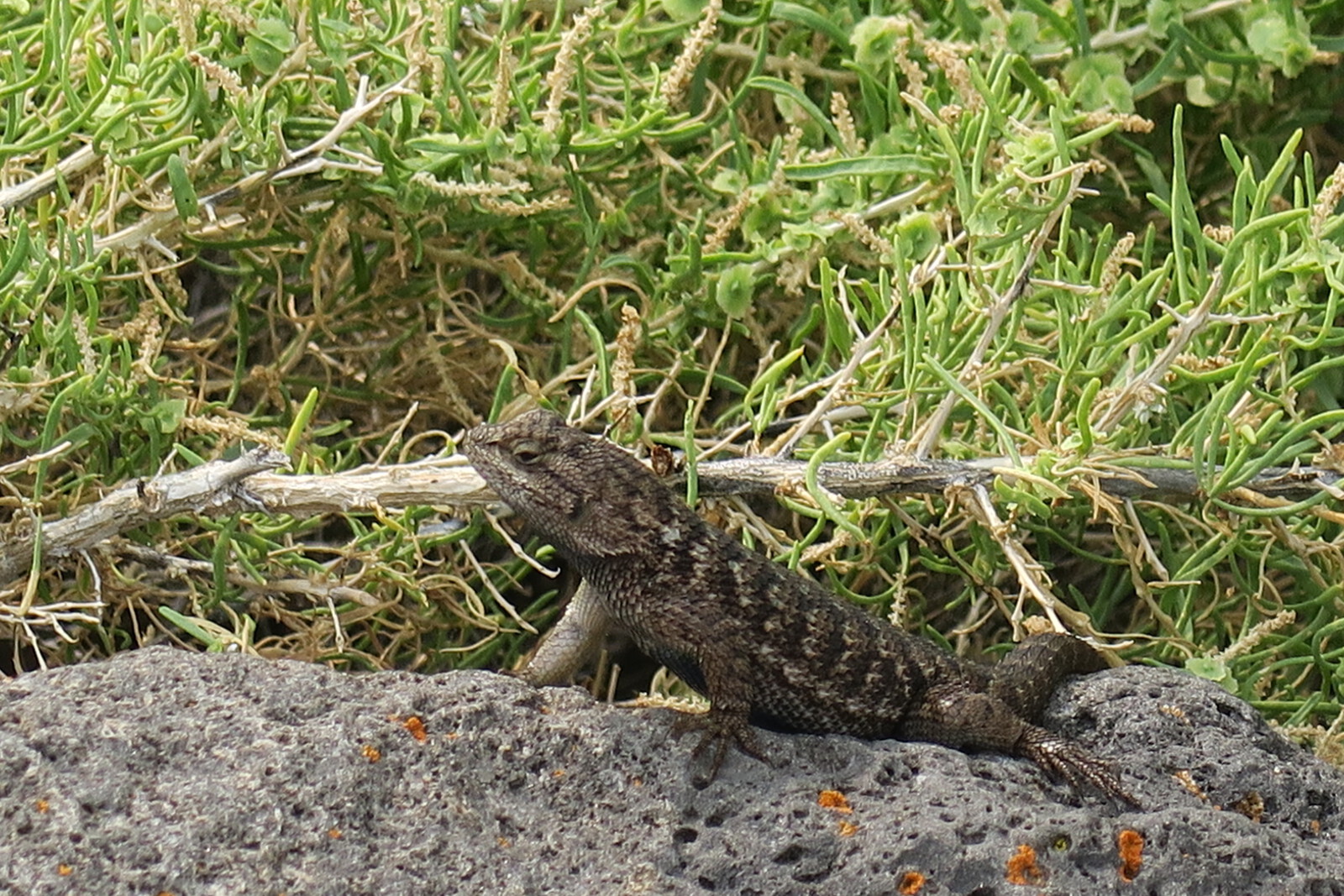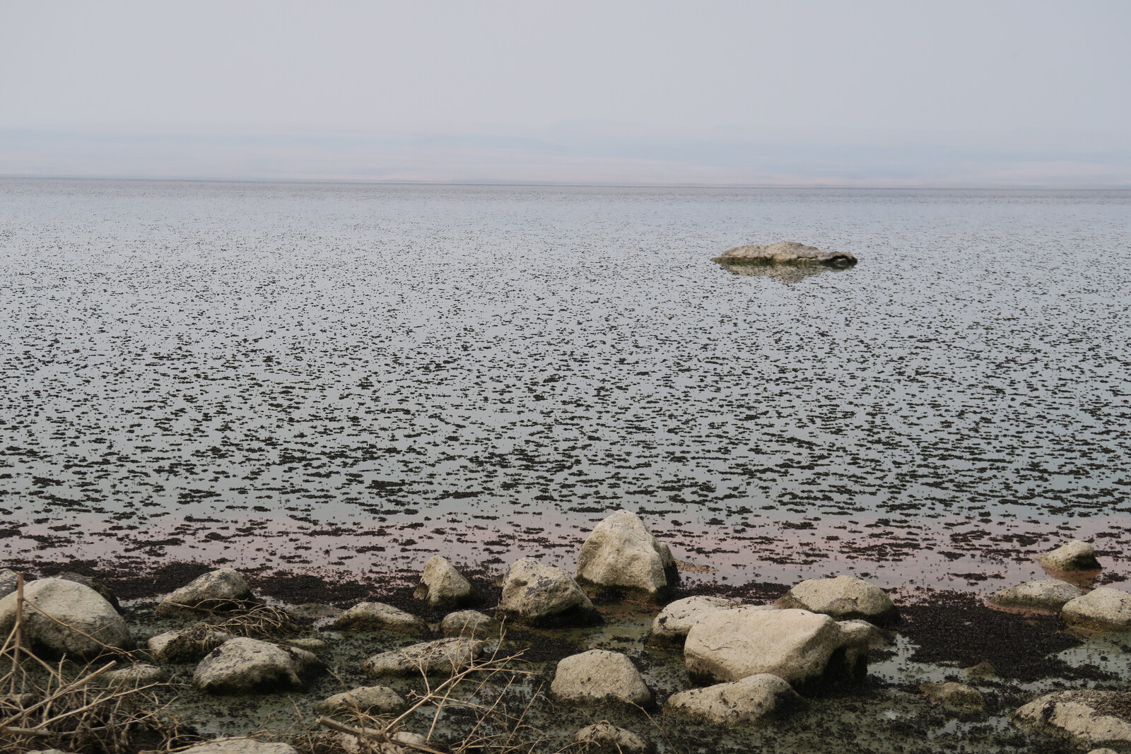 Eines der Highlights war der Lake Abert. Ein Salz und Alkali hältiger See, der seit einigen Jahren immer mehr an Wasser verliert und auszutrocknen droht. Wir gehen zum Ufer und wollen den See aus der Nähe sehen. Es stinkt doch ziemlich und direkt beim See gibt es eine Unmenge an Fliegen. Im Wasser sehen wir viele kleine schwarze undefinierbare Flecken, wahrscheinlich alles Fliegen und Larven. Im Wasser leben keine Fische sondern nur eine Shrimps-Art. Und es gibt Wasservögel, die ihre Bahnen durch die schwarzen Inseln ziehen.