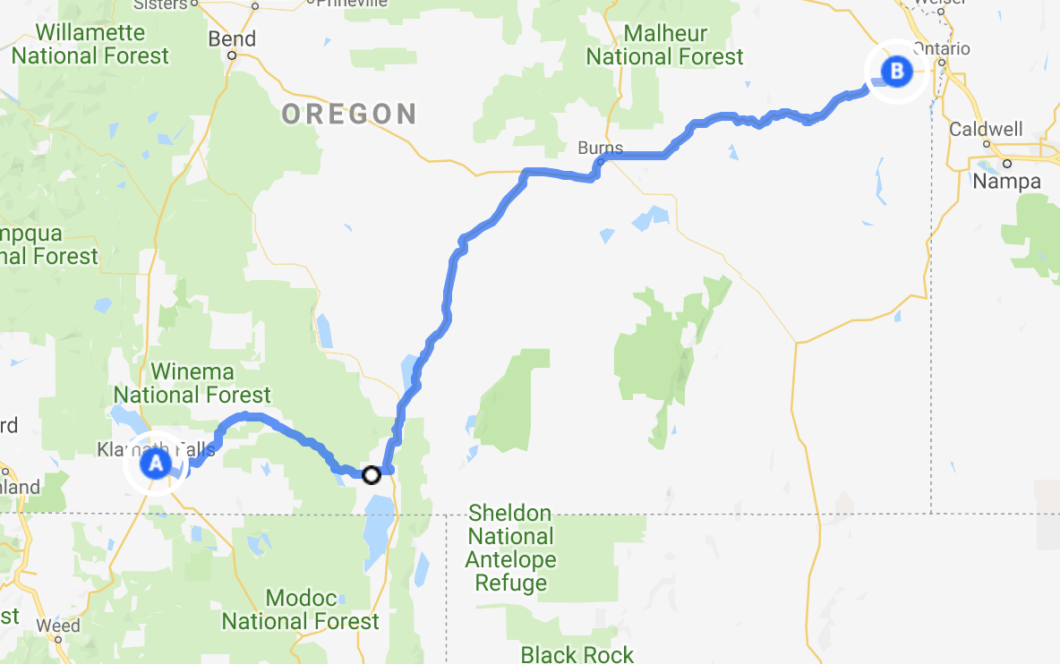 Wir haben noch ein gutes Stück bis zu den Nationalparks in Utah zu bewältigen. Von Klamath Falls gibt es eine Route durch Nevada, oder eine Route weiter durch Oregon und Idaho, die ein Stück weit entlang des Oregon Trail führt. Wir entscheiden uns für die zweite Variante, weil wir glauben, hier gibts mehr zu sehen. Spoiler: das war ein kleiner Irrtum.