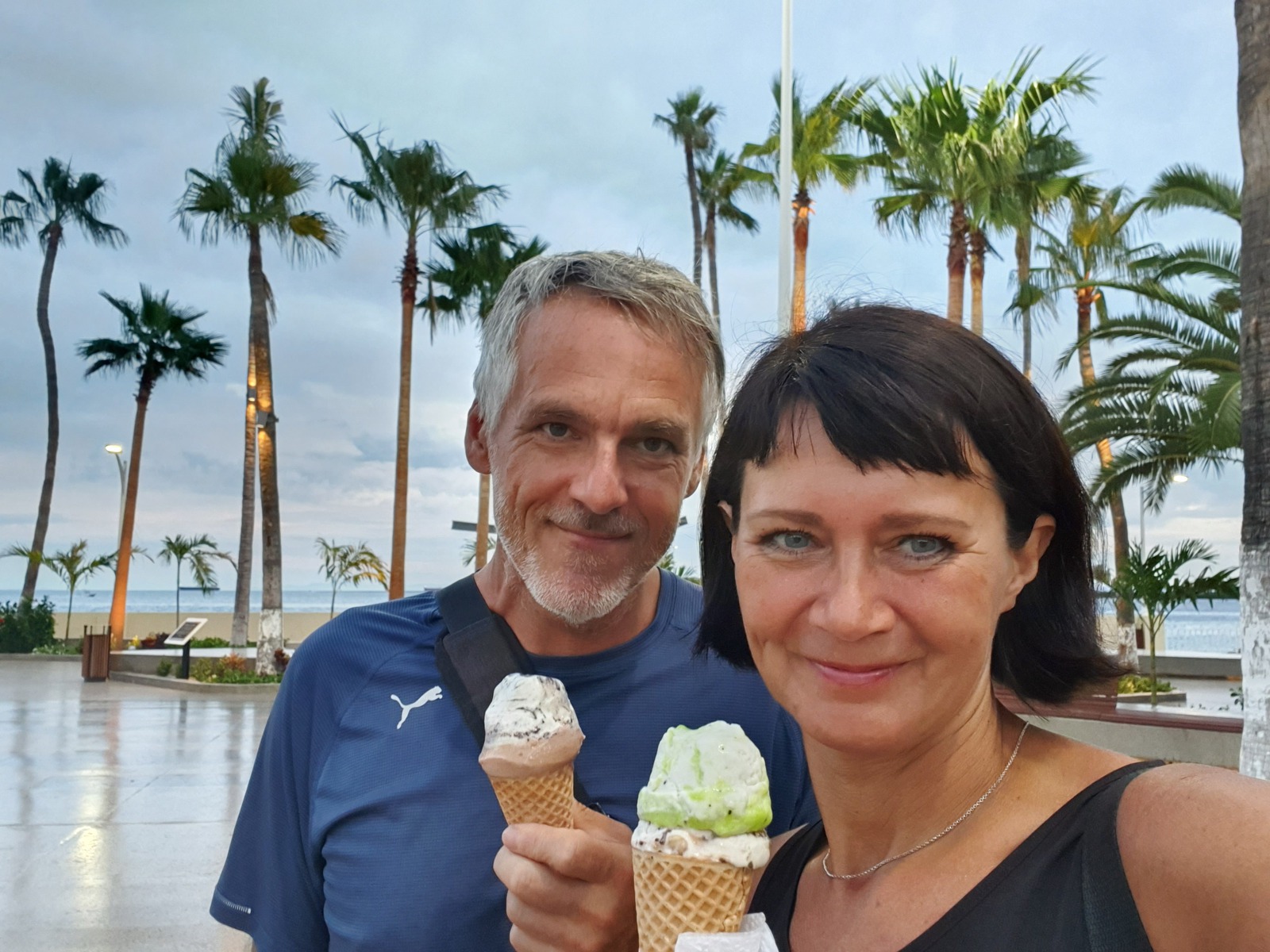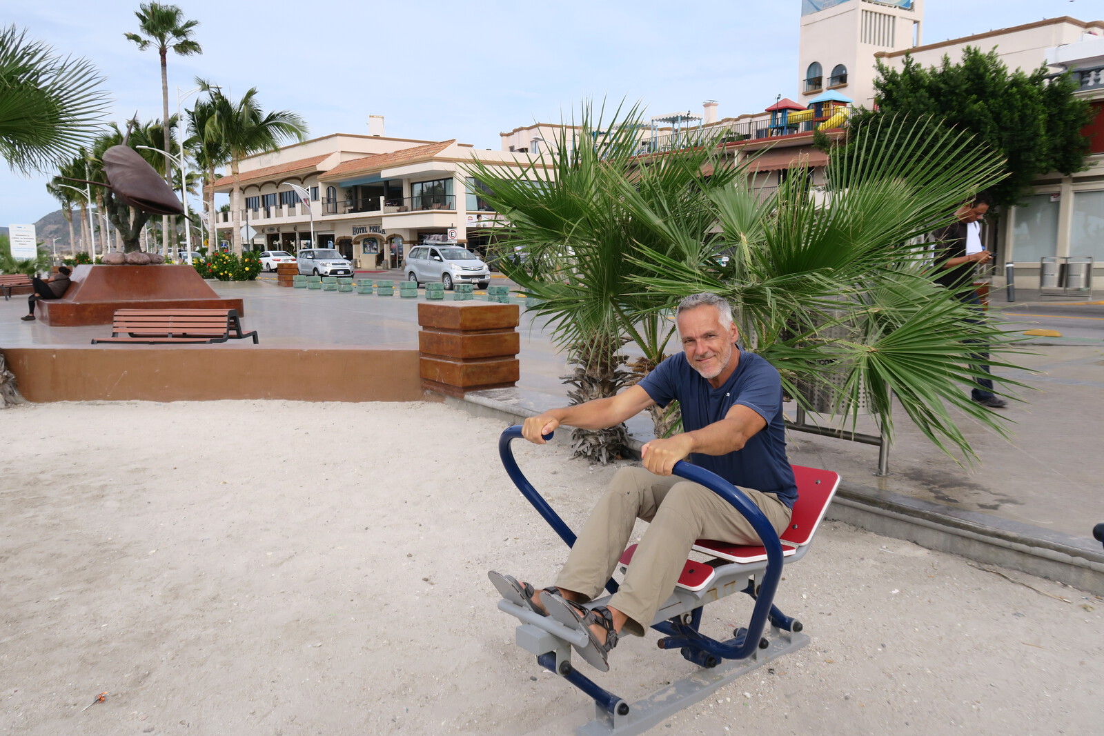 Erster Stopp in La Paz ist das Büro von Baja Ferries. Hannes versucht sein Glück, kommt nach kurzer Wartezeit an die Reihe und fragt wegen dem Ticket. Natürlich alles auf Spanisch. Die Frau hinter dem Schalter sagt, dass sie nachfragen muss und geht weg. Ohje, kein gutes Zeichen. Doch keine 5 Minuten später ist sie wieder da und wir können buchen. Perfekt, gut dass wir es persönlich versucht haben. Bei der Buchung wird Hannes darauf hingewiesen, dass wir uns selbst um Spanngurte zum Fixieren des Motorrades auf der Fähre kümmern müssen. Das ist neu für uns. Bisher gab es das immer auf den Fähren, mit denen wir unterwegs waren.