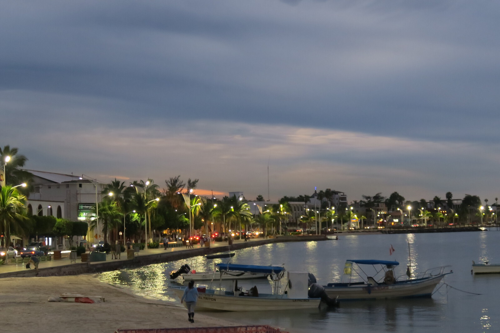 Bei einer Runde am Schiff trifft Hannes noch auf einen Schweizer (den Namen haben wir leider vergessen) und auf Steffen aus Hannover. Beide sind mit einem Wohnmobil unterwegs. Die Überfahrt ist zum Glück sehr ruhig, es gibt kaum Wellen uhnd Hannes wird diesesmal nicht schlecht. Bei der Ankunft in Topolobampo beschließen wir, dass wir alle (außer den beiden Mexikanern) dasselbe Hotel gleich ums Eck in Topolobampo nehmen und noch ein Bier trinken. Richard fährt Bier holen und wir plaudern in der bunten Runde noch beim Pool bis kurz vor 2 Uhr in der Nacht. Ein sehr würdiger Empfang auf dem Festland von Mexiko.