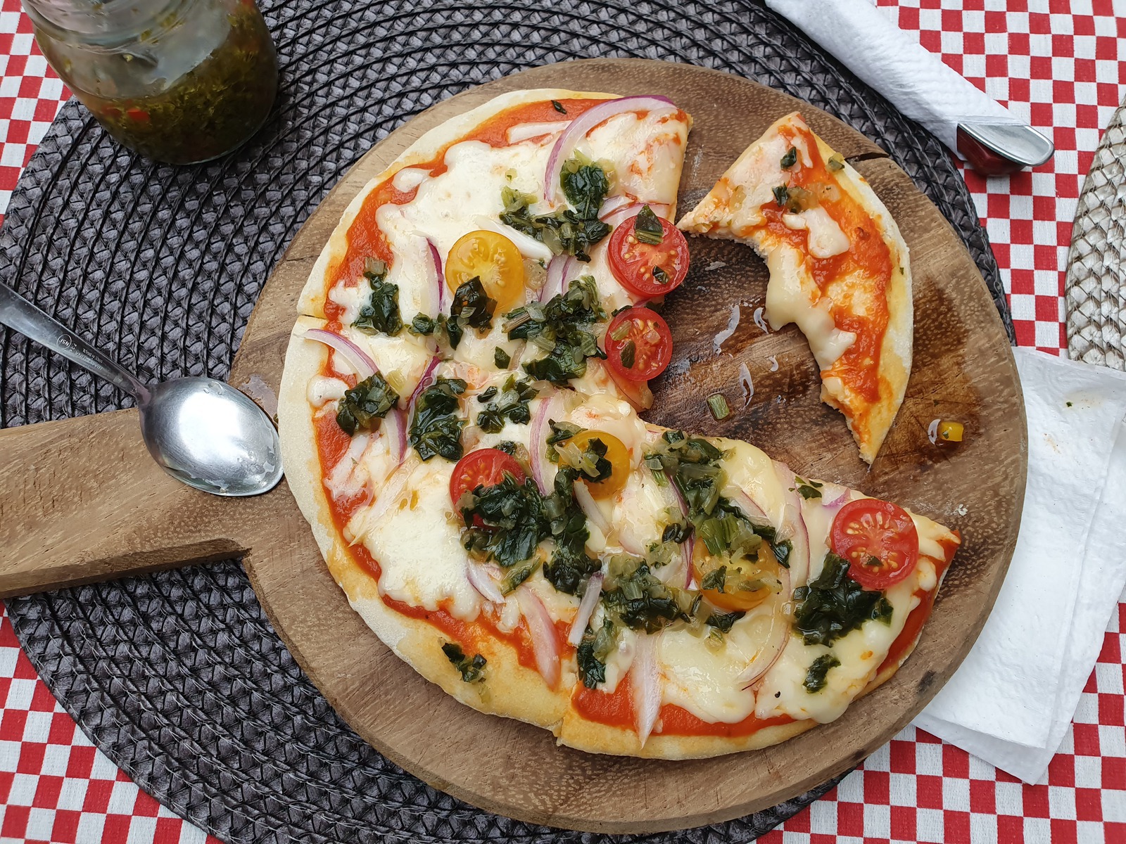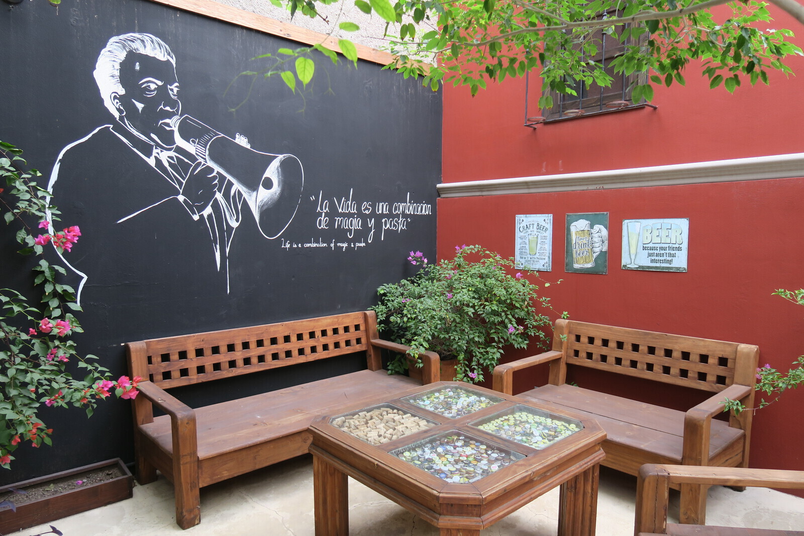 Seit dem Frühstück haben wir nichts gegessen und bei uns beiden macht sich schon der Hunger bemerkbar. Daher suchen wir uns ein Lokal in der Nähe, ohne allzu wählerisch zu sein. Es gibt hausgemachte Pasta und Pizza, wieder eine willkommene Abwechslung. Wir bestellen unsere erste Pizza in Mexiko. Nicht wirklich italienisch, aber trotzdem sehr gut. Hannes findet besonders die öligen Salsas, die wir dazubekommen, sehr lecker.
