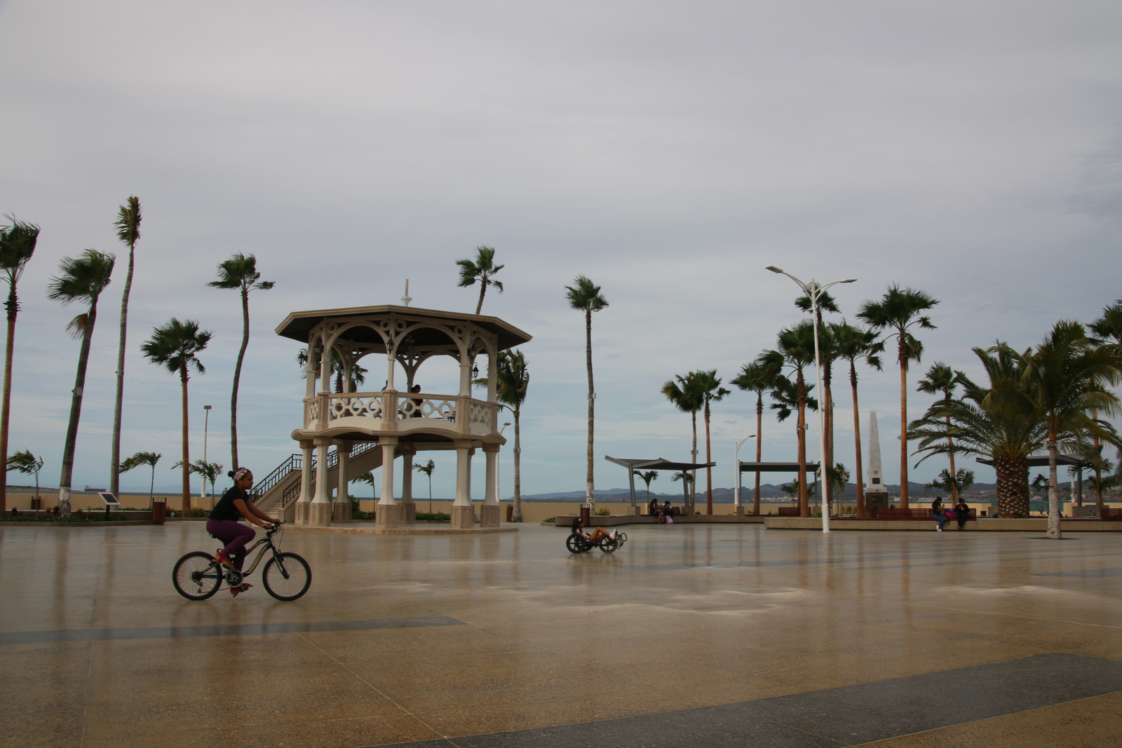 Andrea überlegt lange, ob sie die Tour zum Schwimmen mit Walhaien machen soll. Wir lesen einiges darüber und sind unentschieden. Angeblich werden die Walhaie durch die vielen Boote und Taucher ziemlich in Stress versetzt und einige auch durch Schiffsschrauben verletzt. Letztlich lassen wir es sein und machen stattdessen noch einmal einen Stadtrundgang, bei dem wir bald wieder am Malecón landen. Im Zentrum ist einfach nicht allzu viel zu sehen. So schön der Malecón hergerichtet ist, so verfallen sind manche Häuser in den Straßen dahinter.