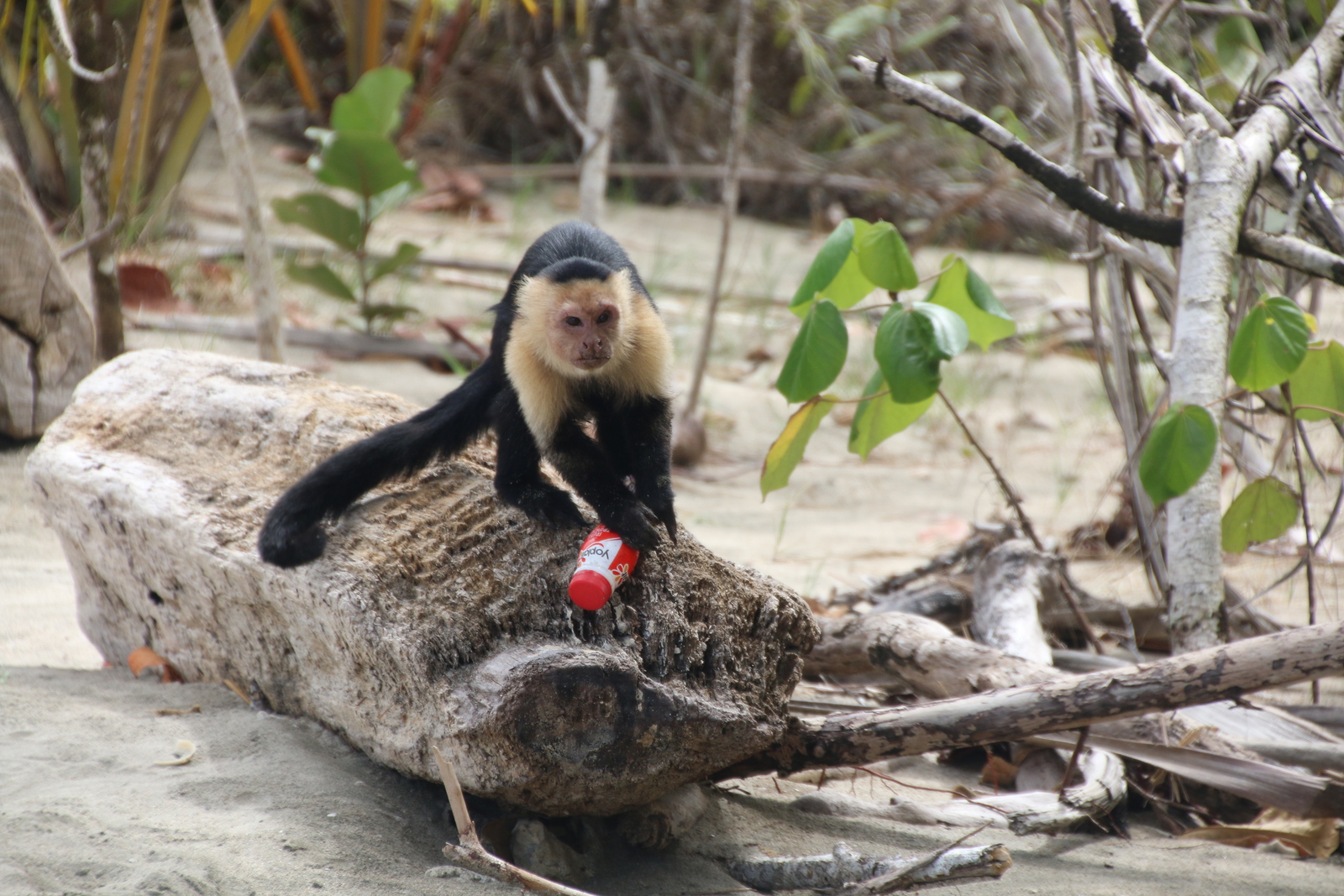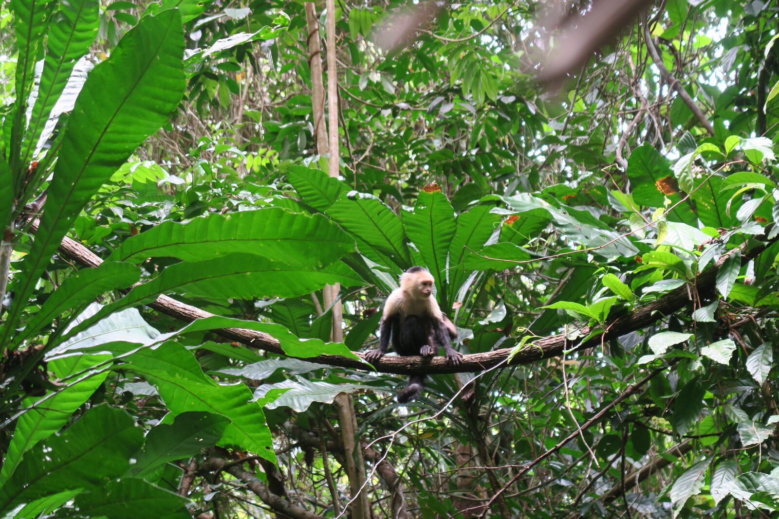 Ziemlich genau in der Mitte vom Boardwalk entdecken wir ein paar Kapuzineraffen beim Fressen. Sie haben es gerade auf eine bestimmte Art von Baumrinde abgesehen. Wir schauen ihnen lange beim Fressen und Herumturnen zu, bevor wir zur Küste weitergehen.