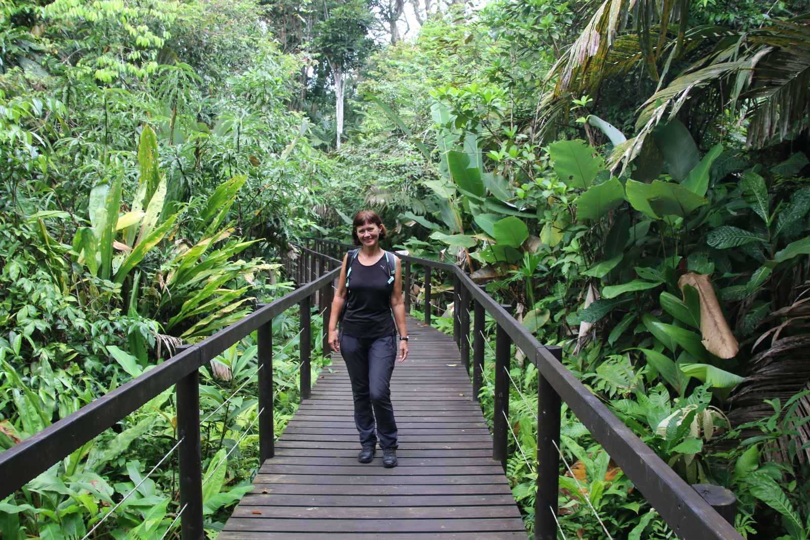 Unsere ukrainischen Bekannten haben uns den Tipp gegeben, nicht den Haupteingang beim NP Cahuita zu nehmen, sondern die Wanderung bei der Puerto Vargas Station zu beginnen. Ein sehr guter Tipp wie sich herausgestellt hat. Hier gibt es zuerst einen wunderschönen Boardwalk durch den Dschungel, bevor man an die Küste kommt, wo der Weg weiter Richtung Haupteingang führt. Zu Beginn sind außer uns nur sehr wenige unterwegs. Erst nach ein paar Kilometern an der Küste treffen wir auf mehr Leute. Offensichtlich gehen die meisten Besucher nicht sehr weit und drehen dann lieber wieder um. Uns ist das mehr als recht, weil wir die Natur alleine genießen können.