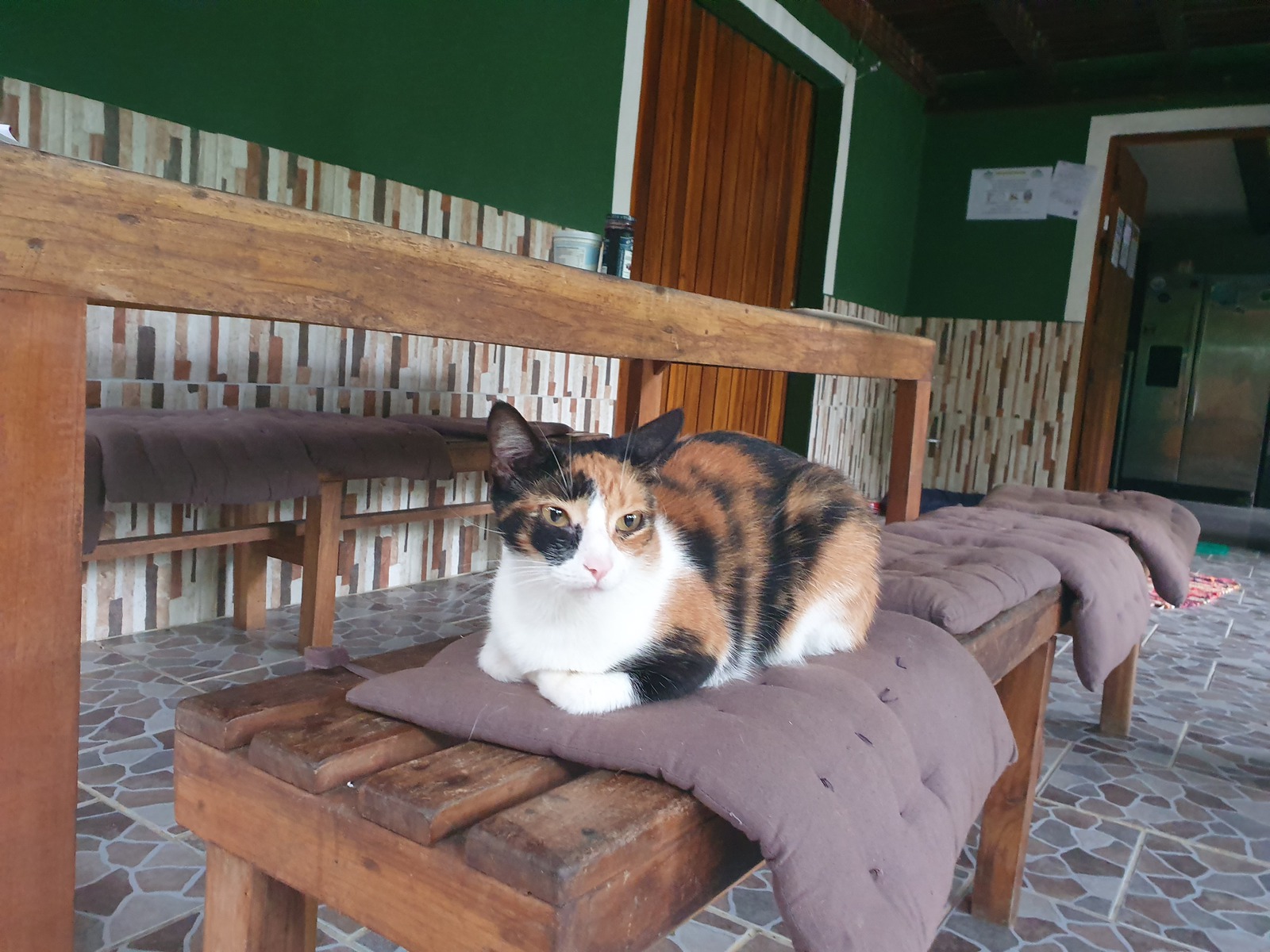 Neben den Gästen leben noch zwei Katzen und ein Hund im Hotel. Sie sind sehr zutraulich und wir schließen mit allen dreien Freundschaft 🙂