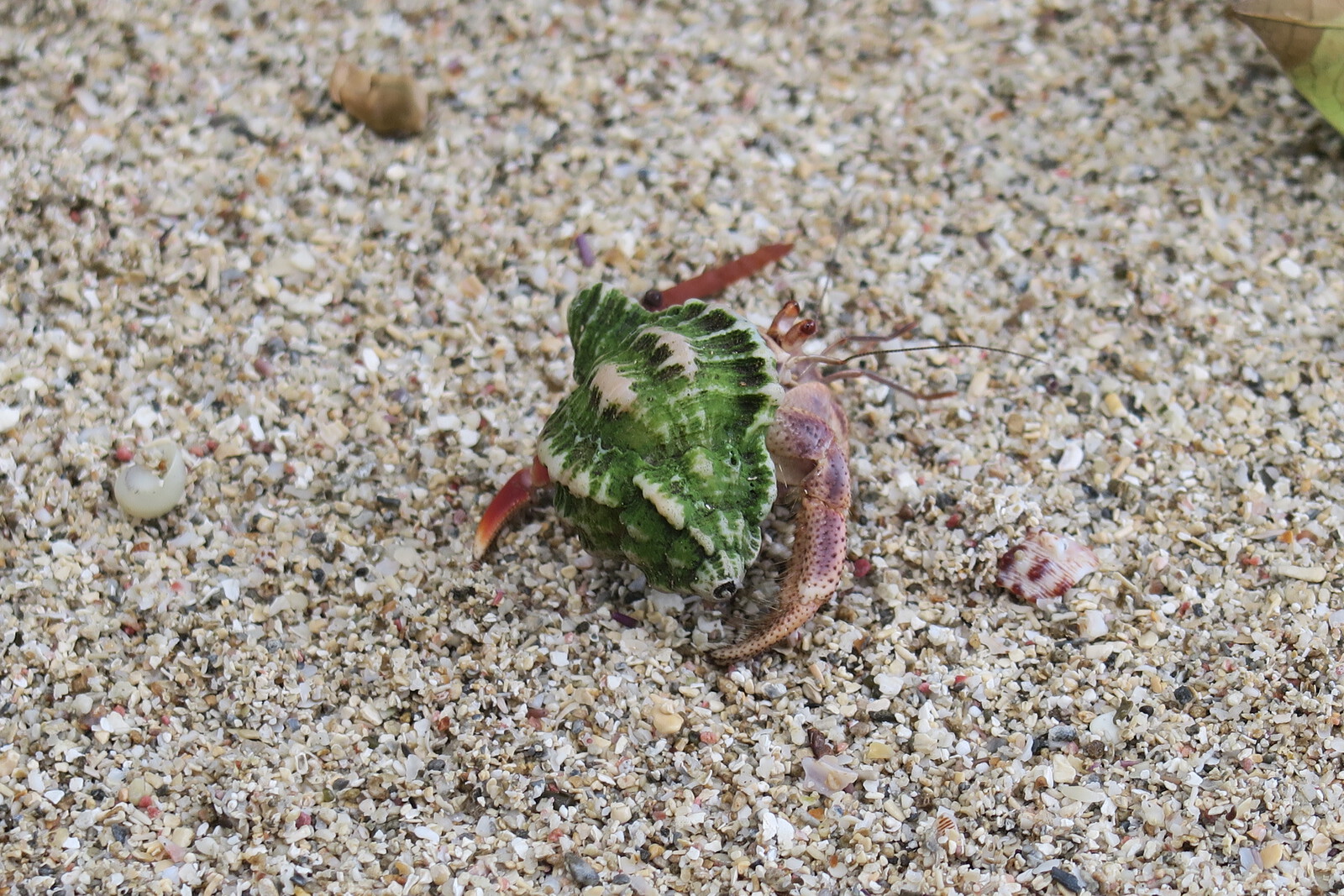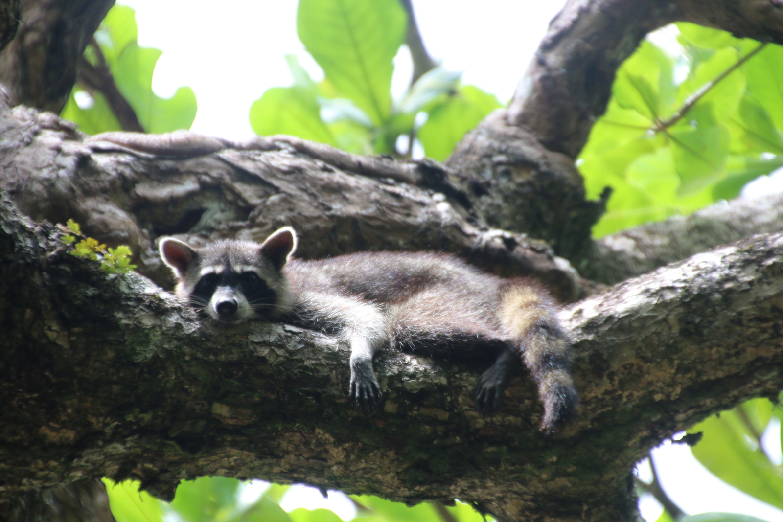 Hier sind deutlich mehr Leute unterwegs und einige sind auch am Strand zum Baden. Dazwischen sehen wir zwei putzige Waschbären, die auf der Suche nach Freßbarem sind. Wo Tourist*innen unterwegs sind, gibt es oft was zu holen. Auch heute entdecken sie die Schalen einer Melone, die ein Mann gerade in den Sand gelegt hat. Die Waschbären sind nicht scheu und holen sich ihren Anteil. Worauf die Partnerin des Mannes ein wenig erschrocken auf einem Baum Zuflucht sucht.
