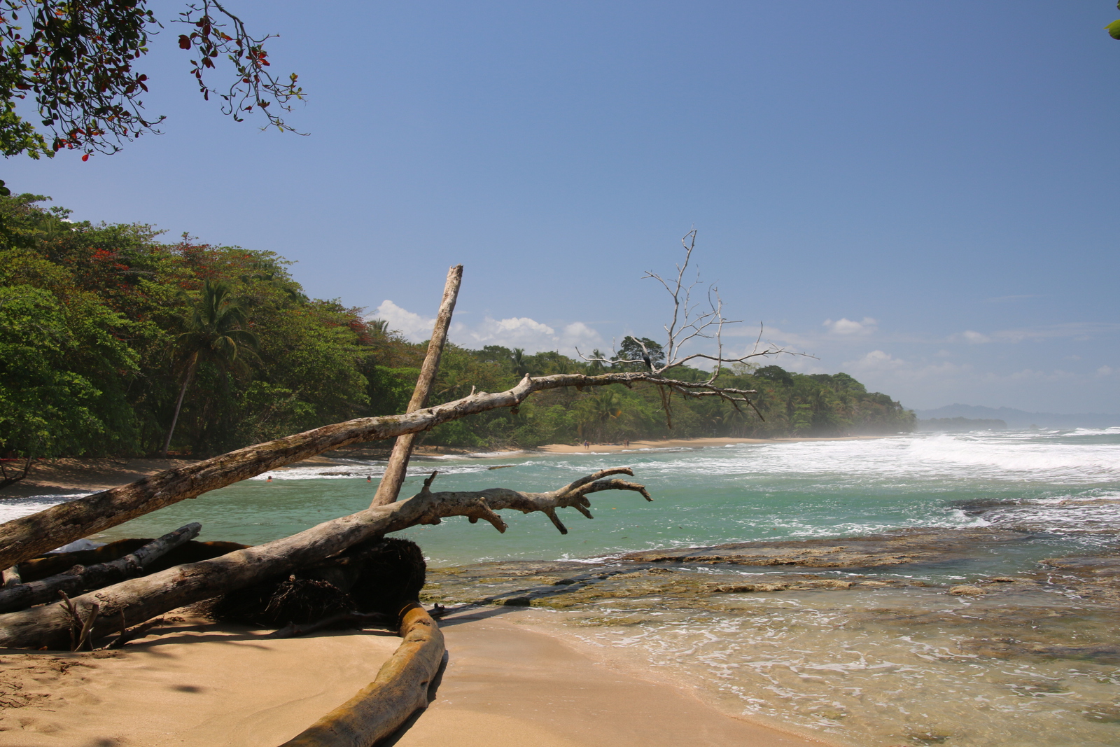 Wir machen uns zu Fuß auf den Weg und wollen den Playa Chiquita erkunden. Er soll einer der schönsten in ganz Costa Rica sein. Tatsächlich ist der ganze Strandabschnitt super schön und trotzem fast menschenleer. Das liegt wahrscheinlich auch daran, dass der Strand an vielen Stellen nicht ideal zum Baden ist und dass es außer einem Restaurant das etwas hinter dem Strand liegt, keine weitere Infrastruktur gibt.